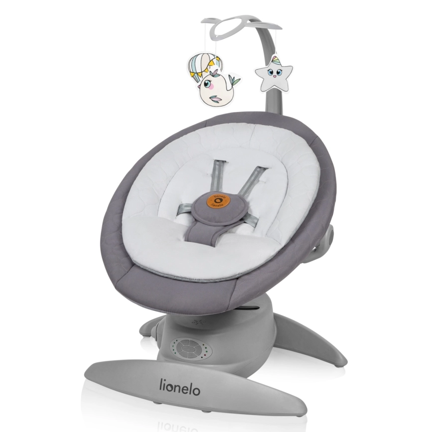 Lionelo - Detské húpacie kresielko s melódiou MELL Grey Stone 4xAA + diaľkové ovládanie