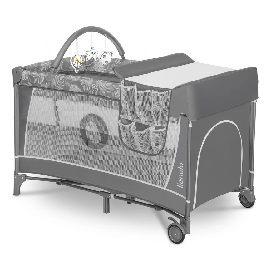 Lionelo - Cestovná postieľka FLOWER Grey Stone