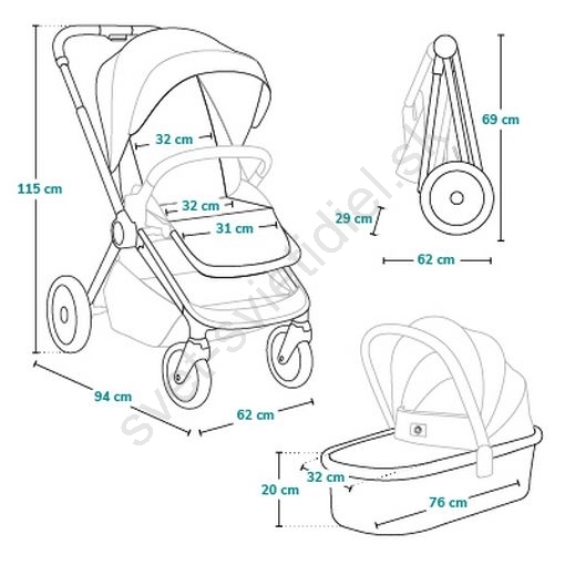 • Bohatá sada príslušenstva: pláštenka, moskytiéra, slnečná strieška, poťah na nohy 2v1, držiak na nápoje, taška, adaptéry.