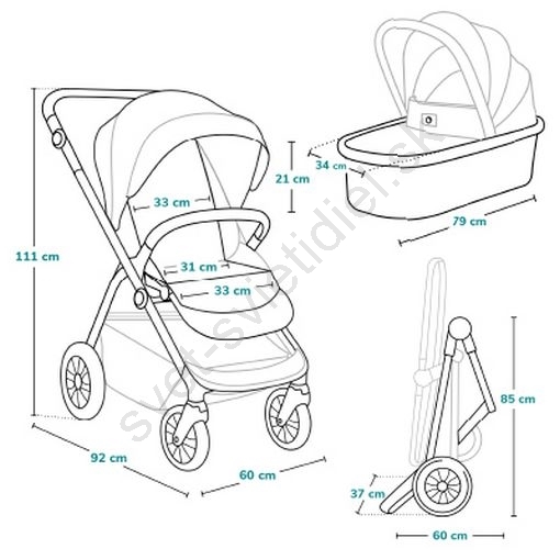 • Sada príslušenstva: návlek na nohy, pláštenka, moskytiéra, taška s vreckami a vystuženým dnom, adaptéry pre autosedačku.