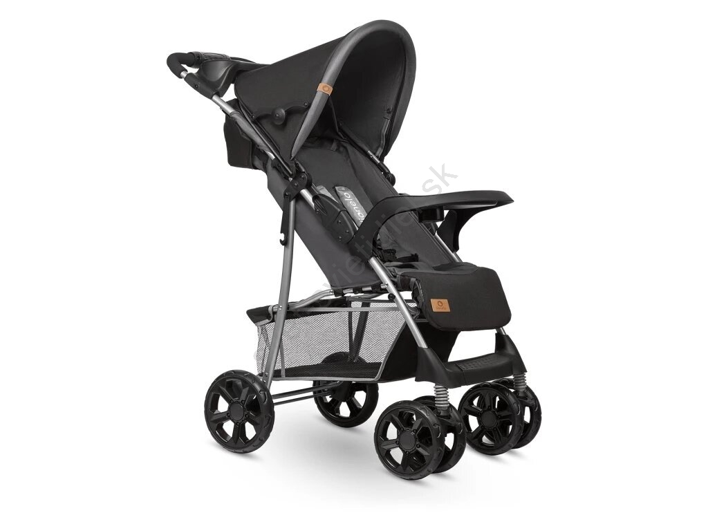 • Kočík má odkladací podnos, ktorý umožňuje dieťaťu odložiť fľašu alebo desiatu počas prechádzky.