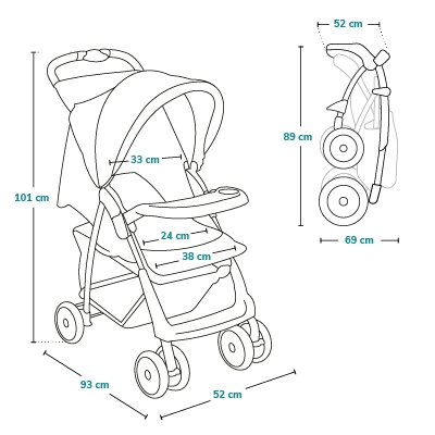 • Priestranná odpočinková plocha (až 91 cm v rozloženom stave) a vysoká strieška zaručujú pohodlné používanie kočíka aj pre staršie deti.