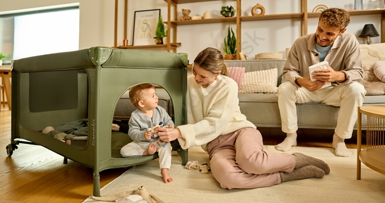 • Skladacia cestovná postieľka, ktorú je možné použiť aj ako ohrádku.