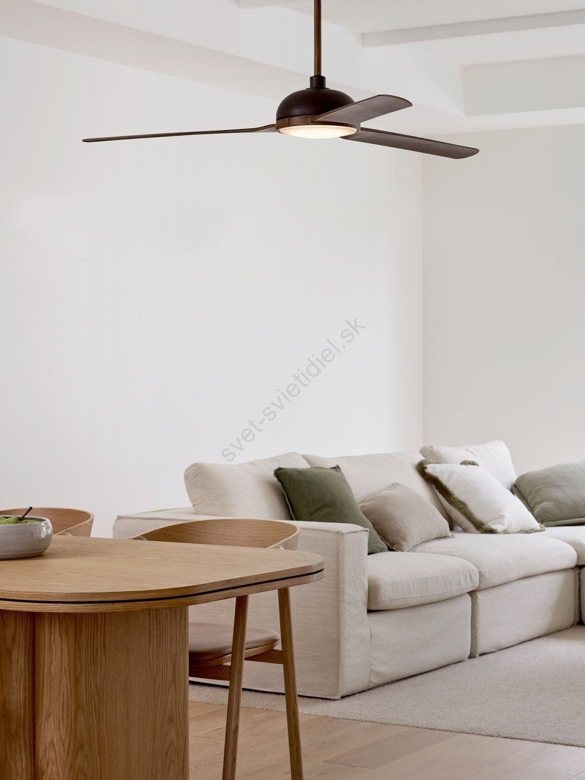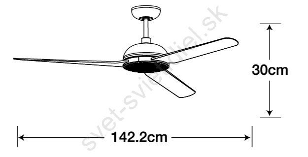 • Stmievateľný stropný ventilátor so svetlom, ktorý je možné ovládať pomocou diaľkového ovládania.