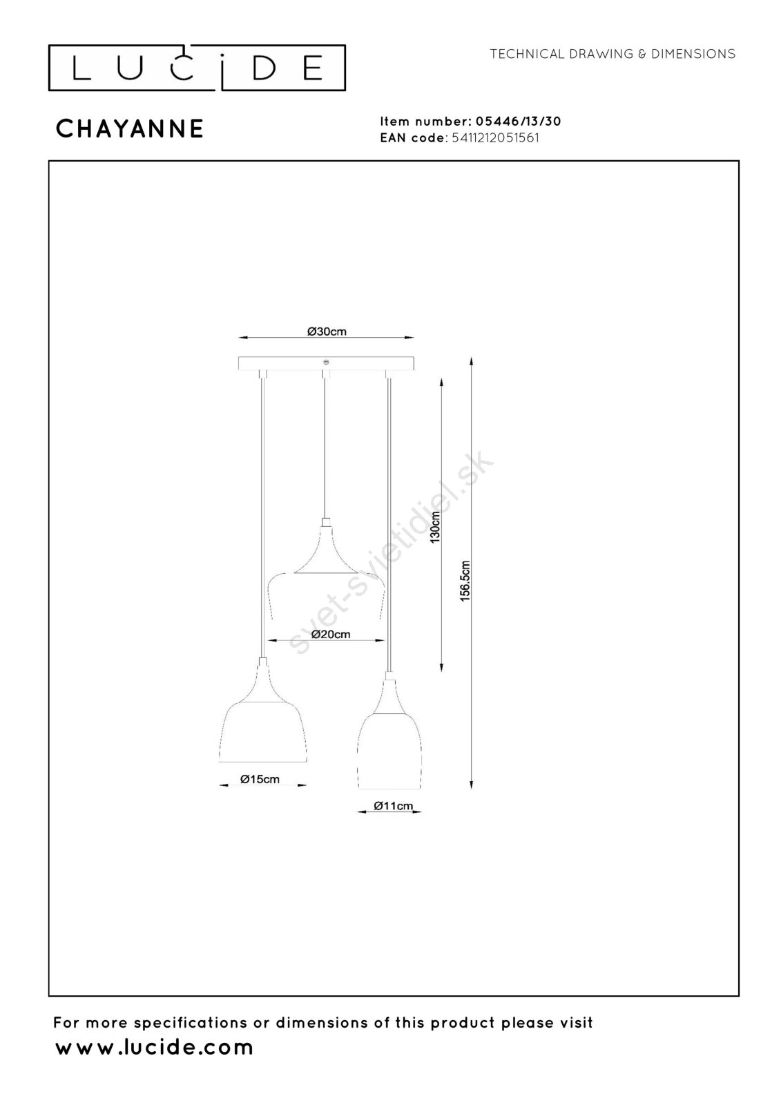 Lucide 05446/13/30 - Závesný luster na lanku CHAYANNE 3xE14/10W/230V charakterizuje pekný dizajn a funkčné prevedenie.  Do svietidla je určená žiarovka s päticou E14. Tu si môžete kúpiť ďalšie žiarovky za výhodnú cenu. Získate tak zaujímavý doplnok do svojho domova.