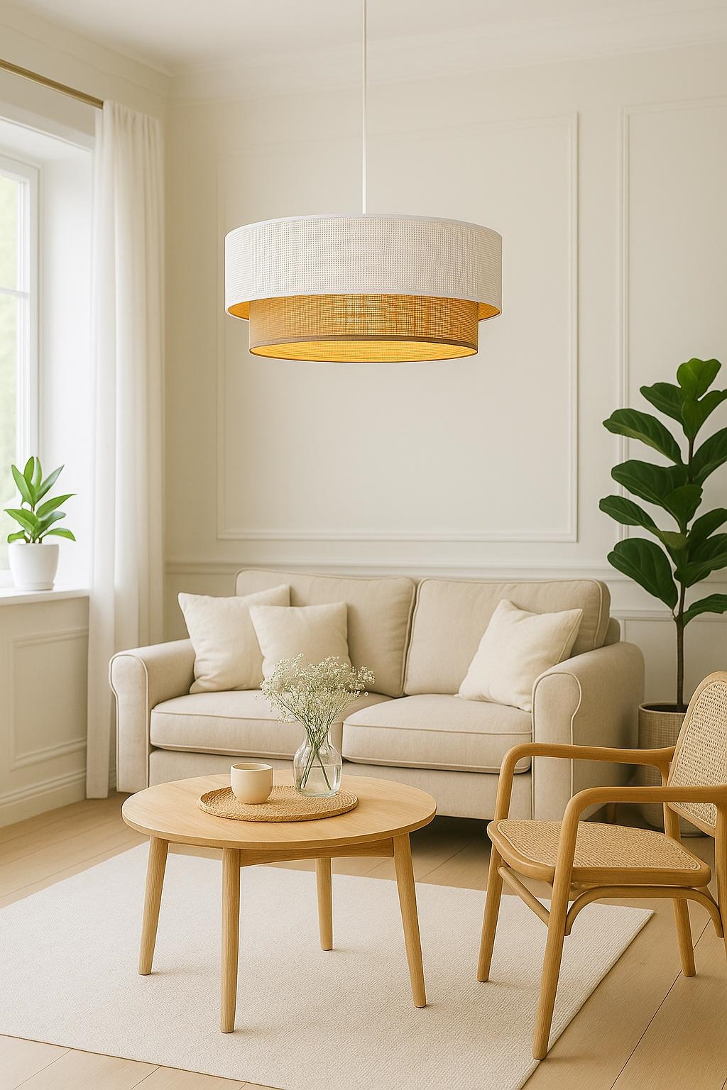 • Závesný luster BORHO na lanku 1xE27/60W/230V pr. 50 cm biela/juta