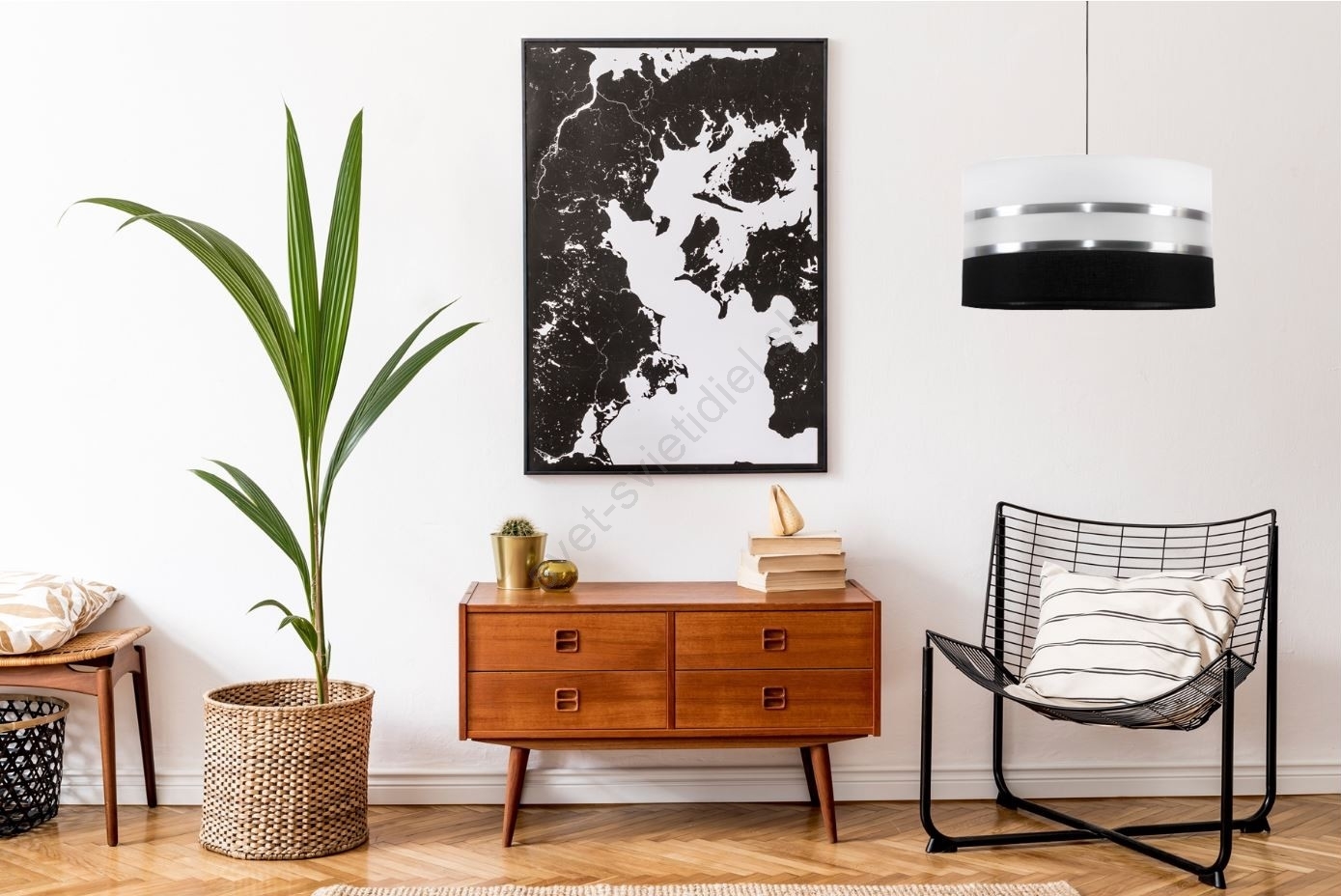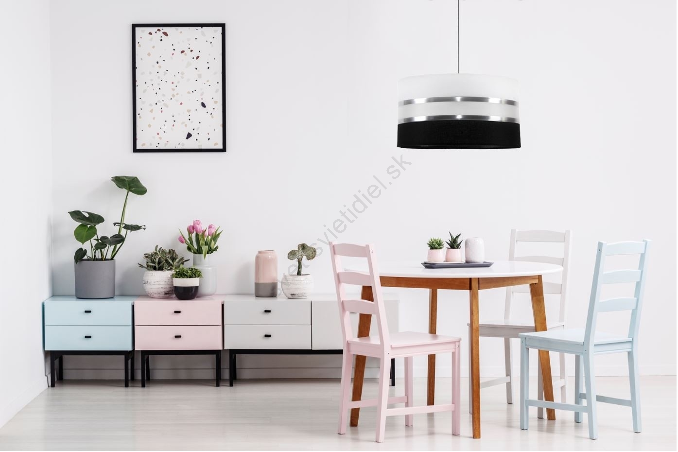 Luster na lanku CORAL 1xE27/60W/230V čiernobiela charakterizuje pekný dizajn a funkčné prevedenie.  Do svietidla je určená žiarovka s päticou E27. Tu si môžete kúpiť ďalšie žiarovky za výhodnú cenu. Získate tak zaujímavý doplnok do svojho domova.