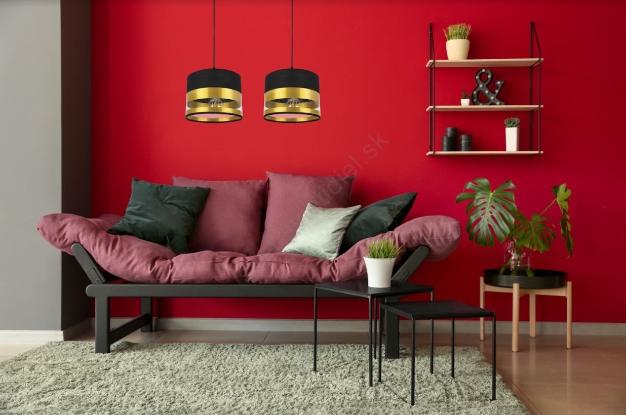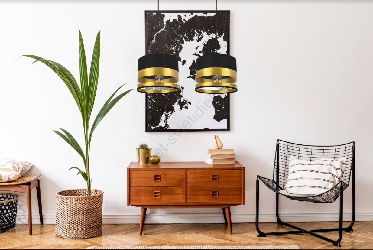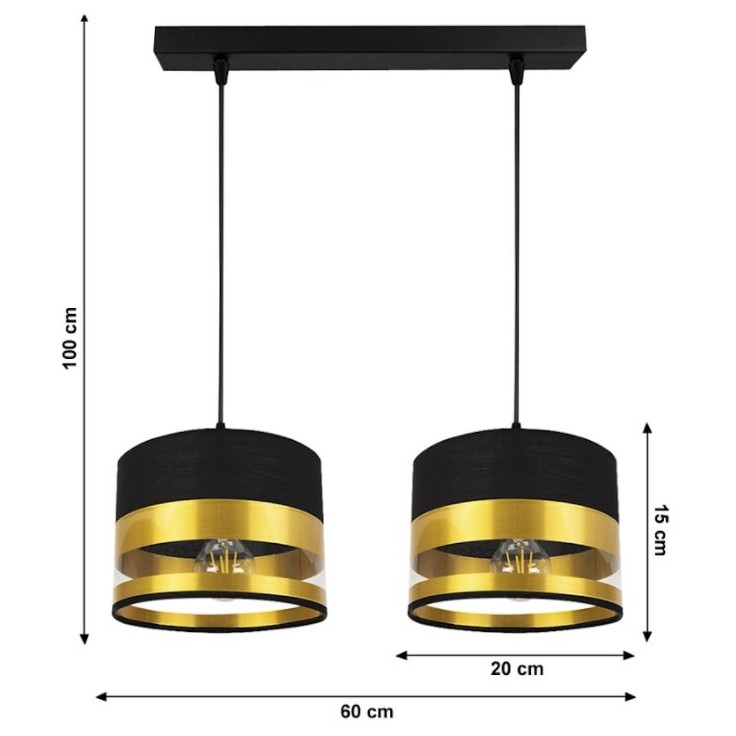 Luster na lanku MILO 2xE27/60W/230V zlatá/čierna charakterizuje pekný dizajn a funkčné prevedenie.  Do svietidla je určená žiarovka s päticou E27. Tu si môžete kúpiť ďalšie žiarovky za výhodnú cenu. Získate tak zaujímavý doplnok do svojho domova.