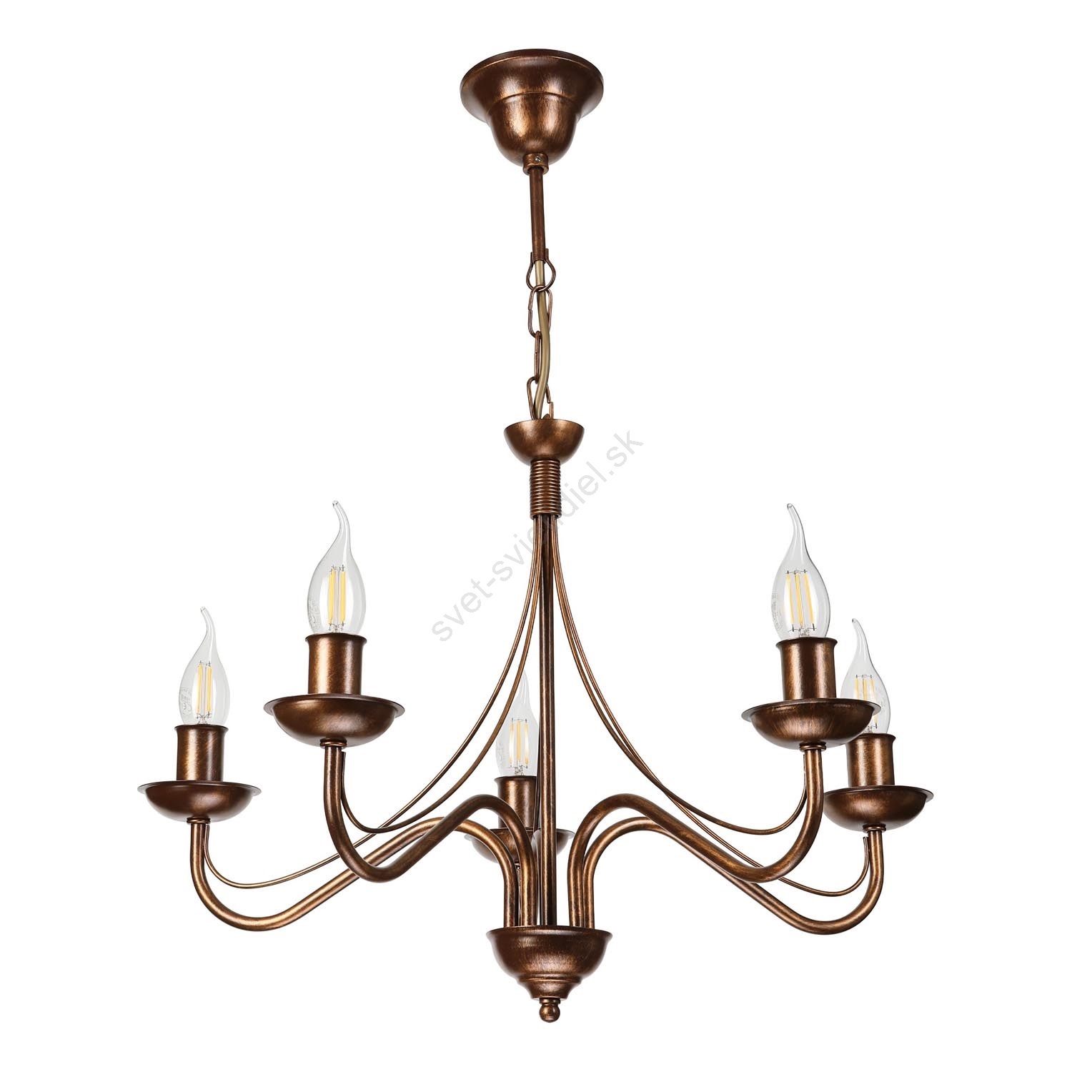 Luster na reťazi ANTON 5xE14/15W/230V bronzový