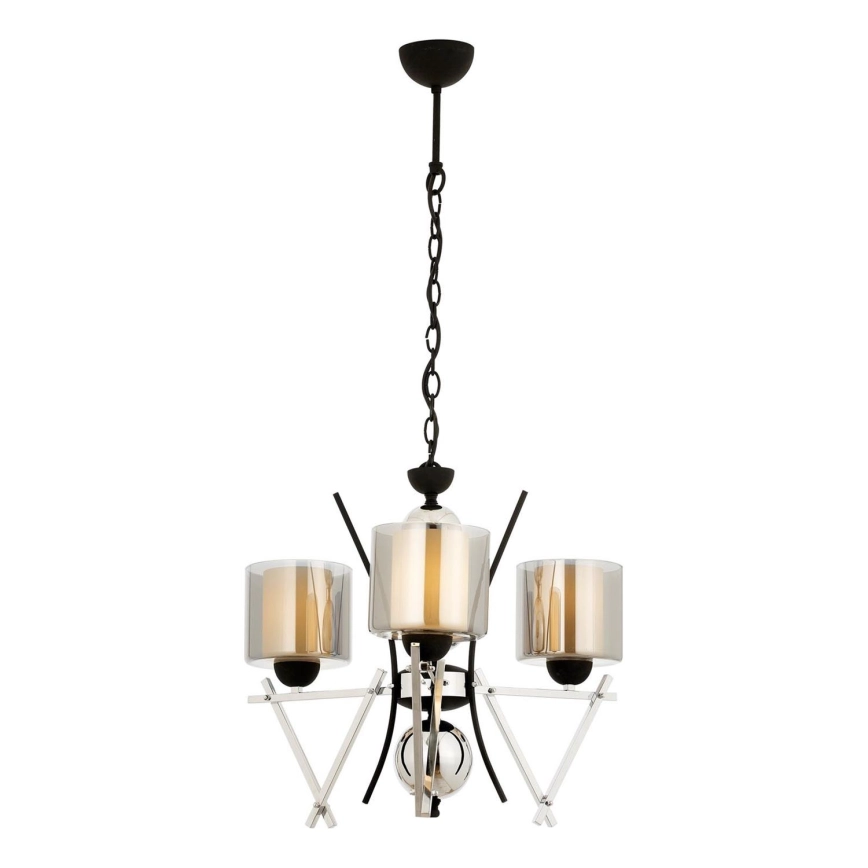 Luster na reťazi VARANA 3xE27/40W/230V čierna/lesklý chróm