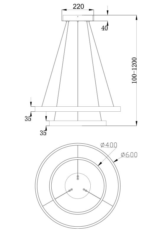 • Maytoni MOD058PL-L55B3K - LED Luster na lanku RIM LED/61W/230V 3000K pr. 60 cm čierna
