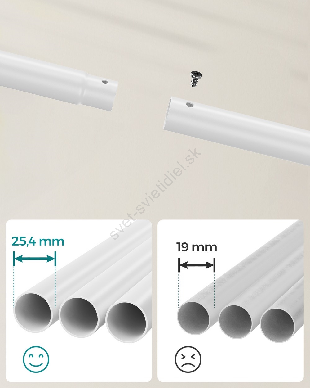• Vďaka skrutkám, ktoré upevňujú oceľové rúry hrúbky 25,4 mm, má tento vešiak stabilný rám s nosnosťou až 100 kg.