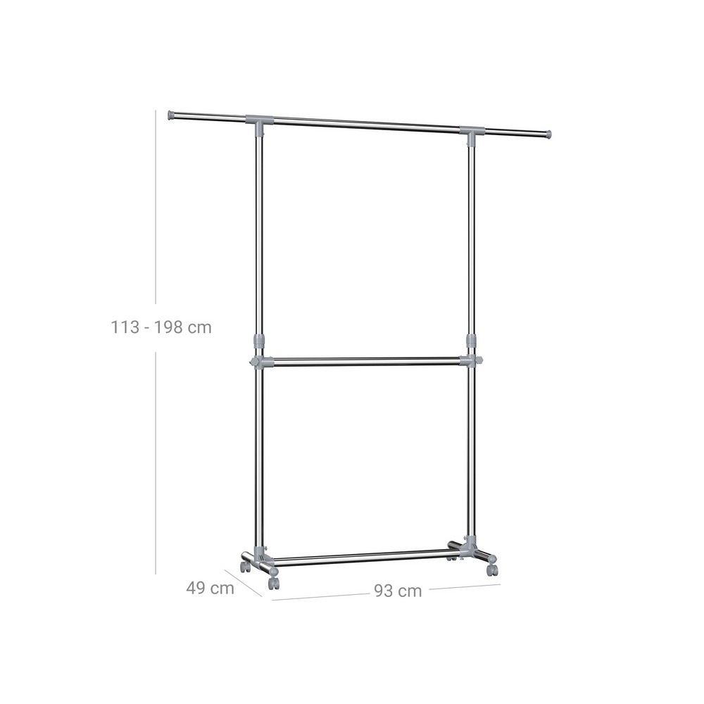 • Má 2 šatné tyče, na ktoré môžete zavesiť rôzne druhy oblečenia, tašky, uteráky alebo posteľnú bielizeň; hodí sa do spálne, predsiene alebo pivnice.