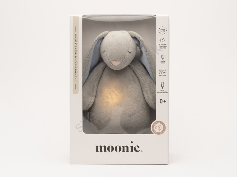 • Moonie usínáčik v podobe roztomilého zajka s nočným svetlom a relaxačnými zvukmi pomáha bábätku ľahšie zaspať.