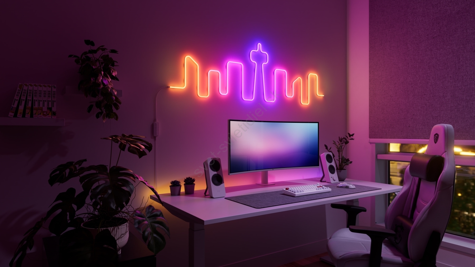 • Nastavte pásik tak, aby reagoval na rytmus hudby pomocou Rhythm Scenes alebo Orchestrator (prostredníctvom aplikácie Nanoleaf Desktop App).