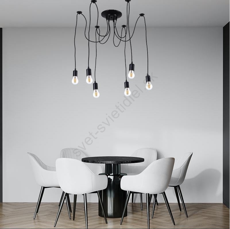 Napájací kábel 6xE27/60W/230V pavúk čierna charakterizuje pekný dizajn a funkčné prevedenie.  Do svietidla je určená žiarovka s päticou E27. Tu si môžete kúpiť ďalšie žiarovky za výhodnú cenu. Získate tak zaujímavý doplnok do svojho domova.
