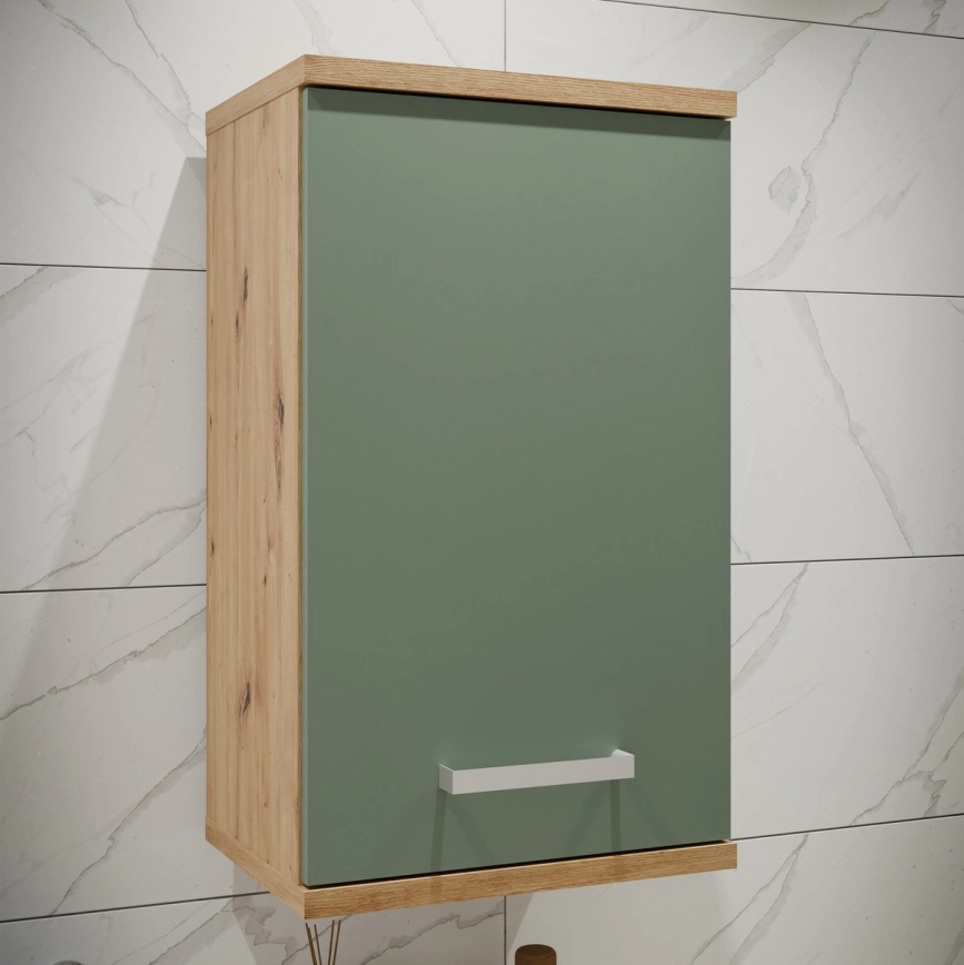 Nástenná kúpeľňová skrinka VENOM zelená/dub artisan
