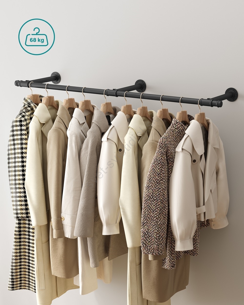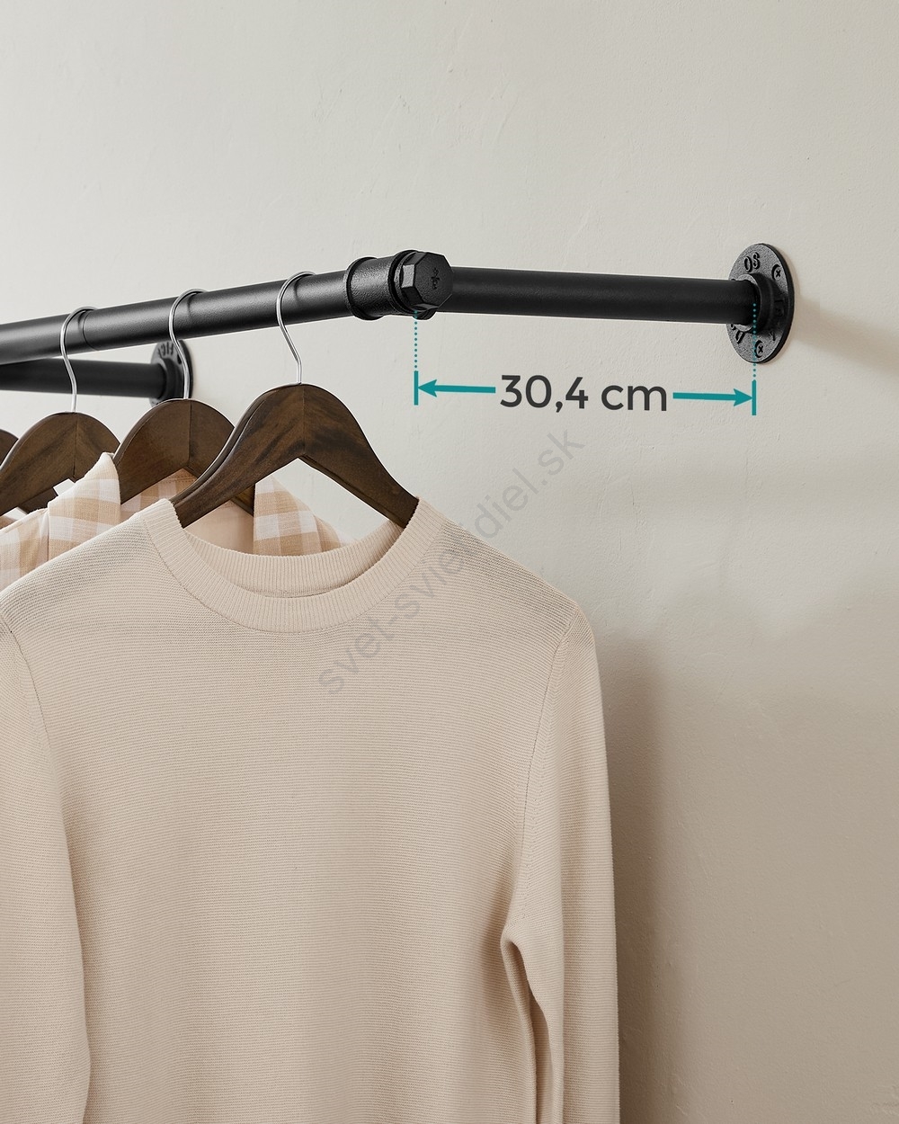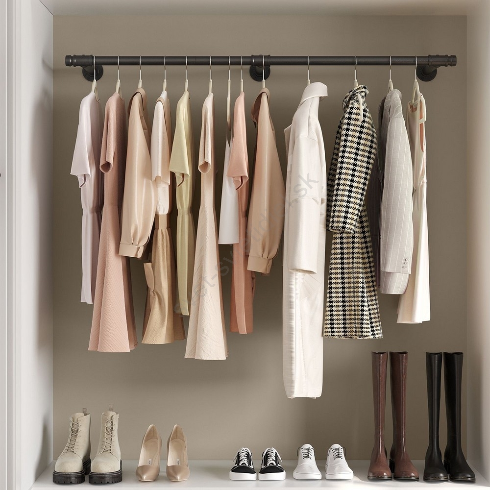 • Držiak optimálne využíva priestor na stene a rozširuje priestor na organizáciu a zavesenie oblečenia, keď je v skrini málo miesta, bez toho, aby zaberal podlahovú plochu.