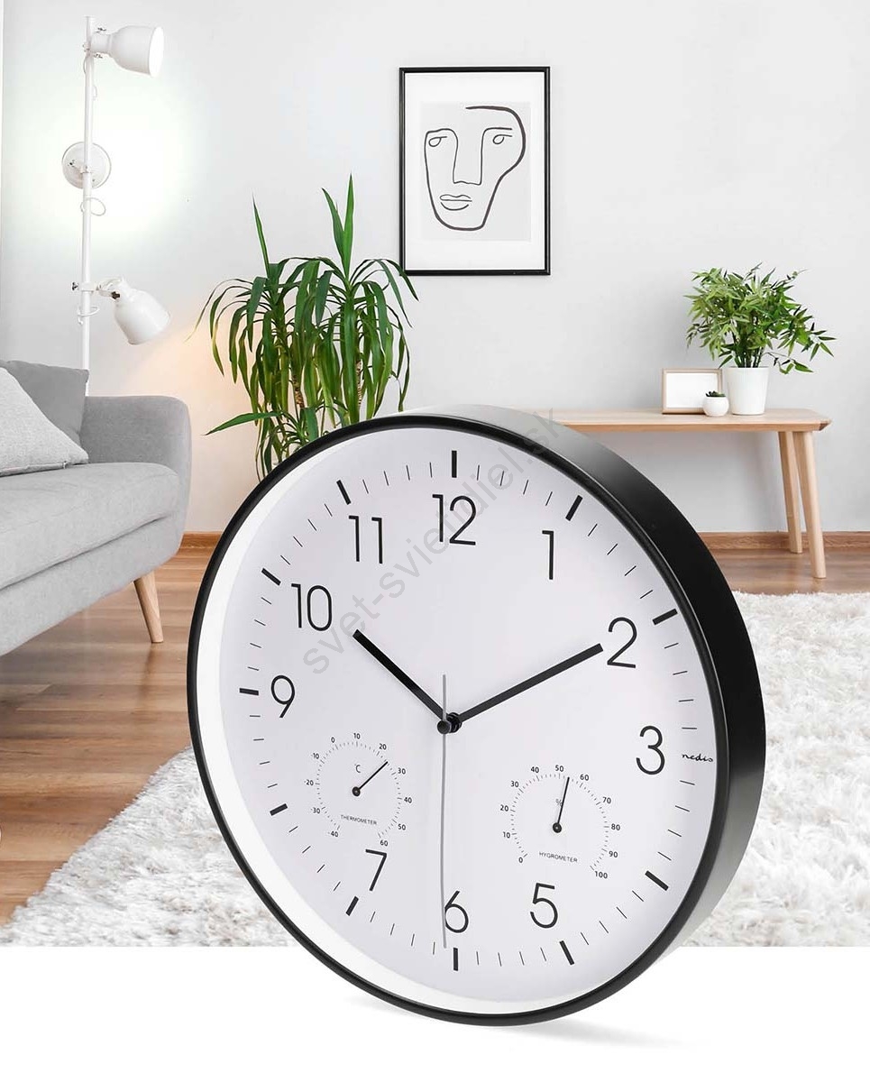 Nástenné hodiny s teplomerom a vlhkomerom, priemer 30,5 cm, 1xAA, čierne