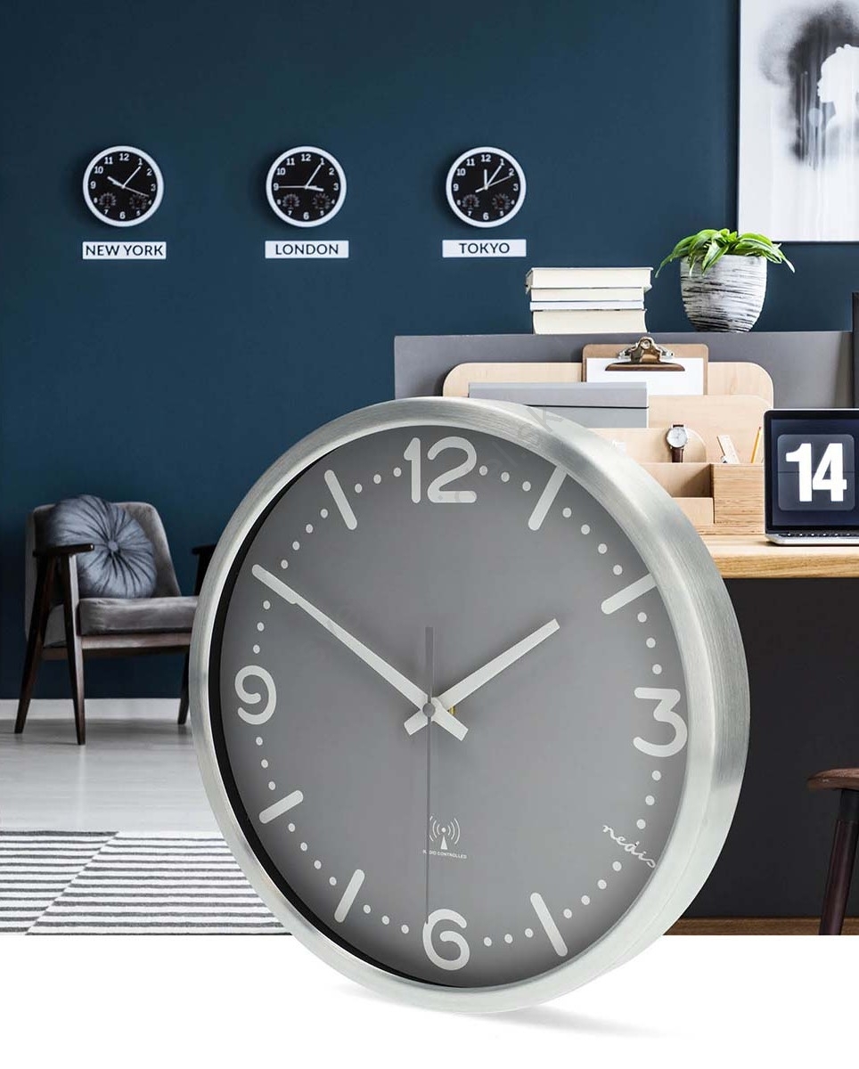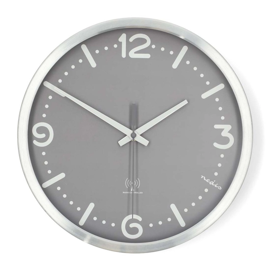 Nástenné hodiny Ø 30,5 cm, 1× AA, matný chróm/šedá