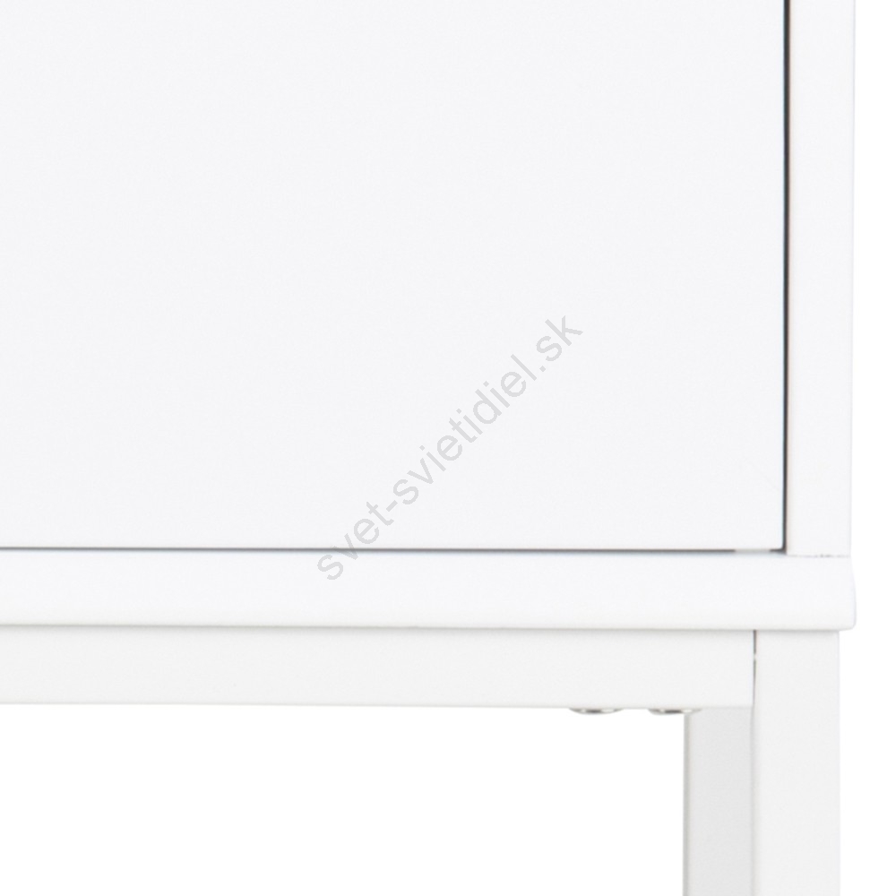 • Vrchná doska, rám a zásuvka z MDF s UV lakom v bielej farbe, podstavec z ocele s bielym práškovým nástrekom.