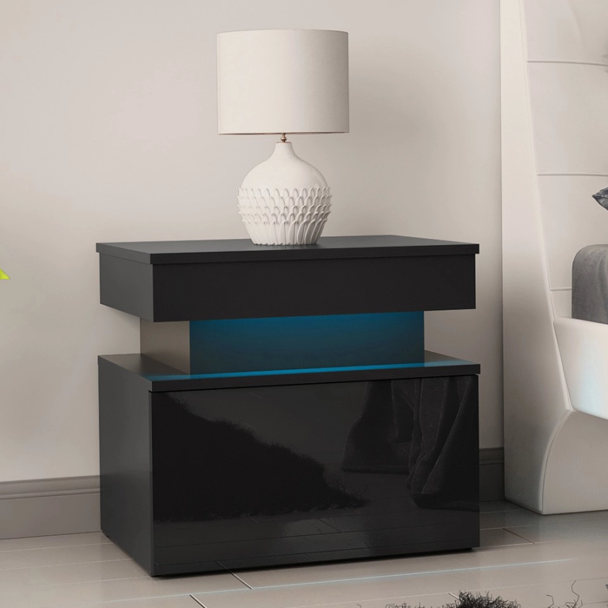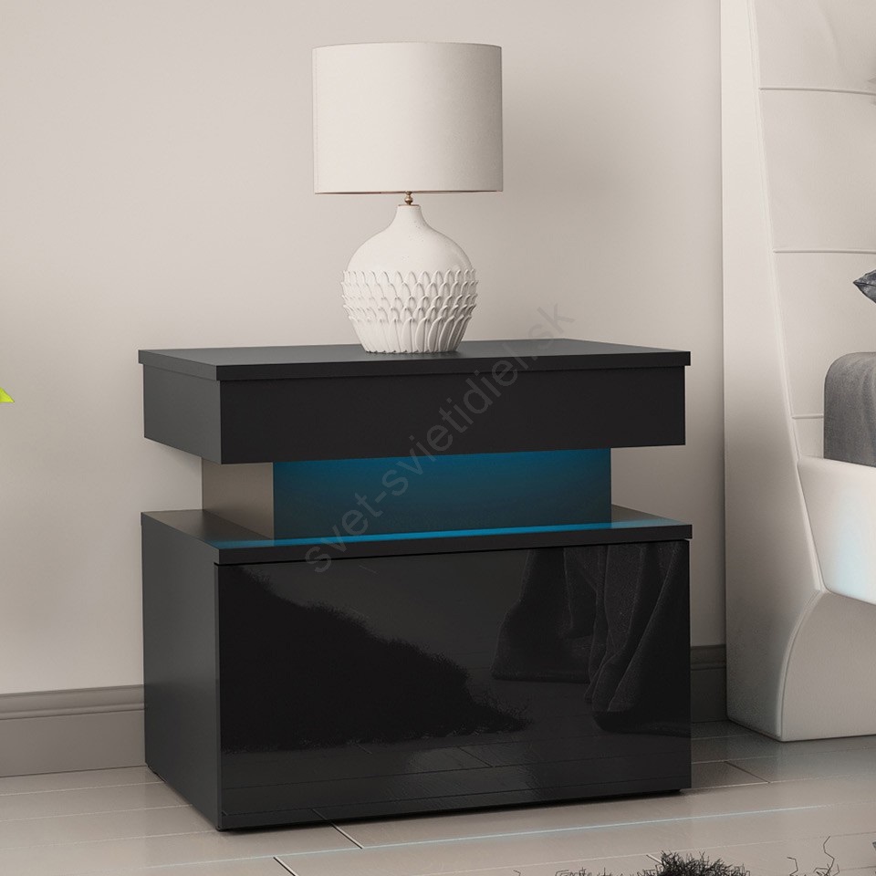 • Nočný stolík GLOSSA s LED osvetlením 51x55 cm, čierna/lesklá čierna