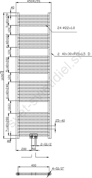 Novaservis - Kúpeľňový rebríkový radiátor 423W/230V 160x45 cm lesklý chróm rovný