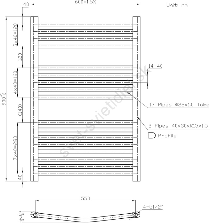 Novaservis - Kúpeľňový rebríkový radiátor 478W/230V 90x60 cm biely zaoblený