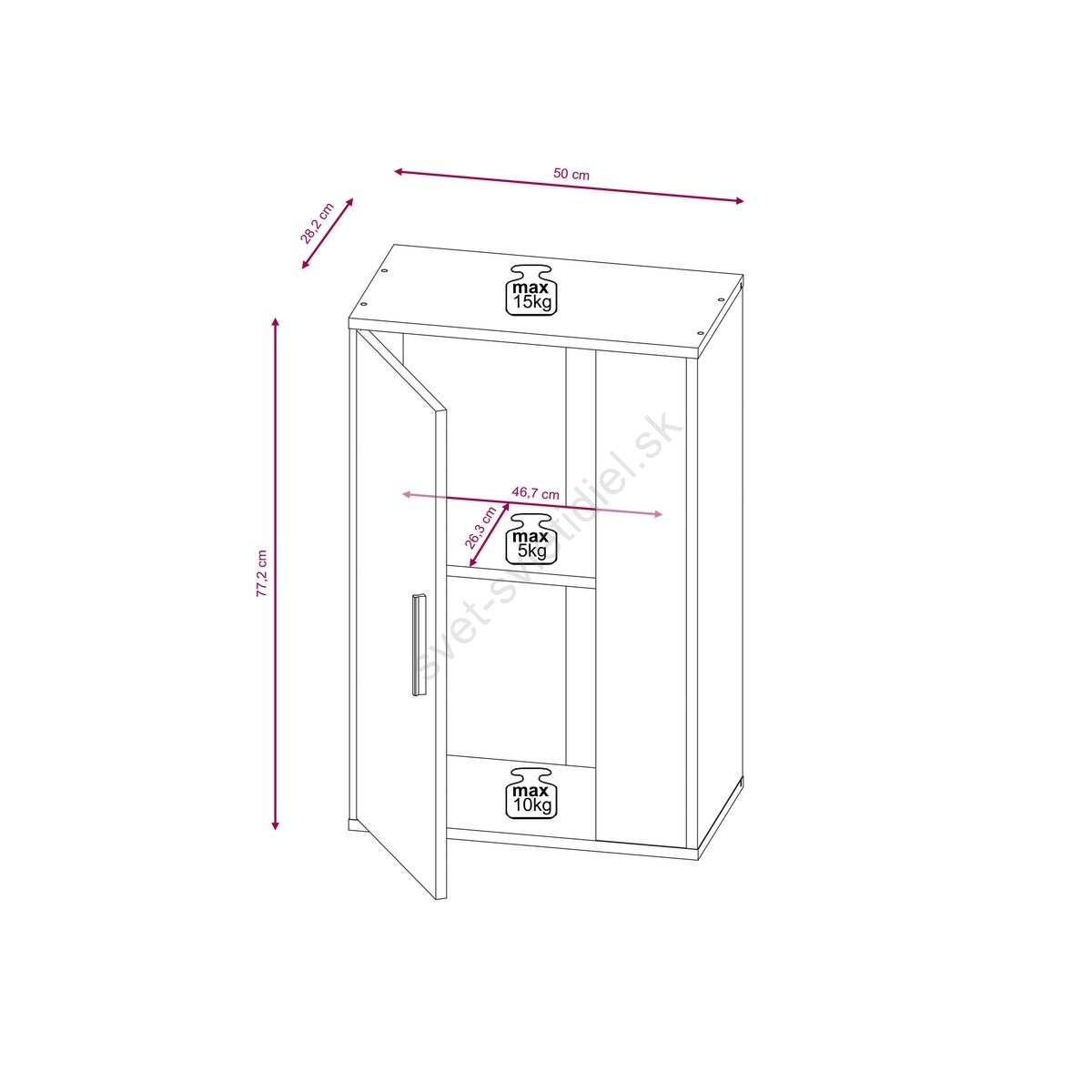 • Nástenná skrinka a vysoká bočná skrinka ponúkajú ďalší priestor na knihy, dekorácie a domáce potreby.