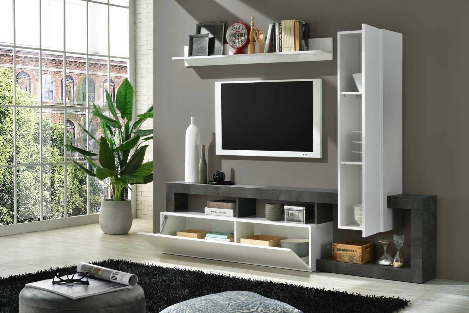 Obývacia stena LENOR biela/antracit