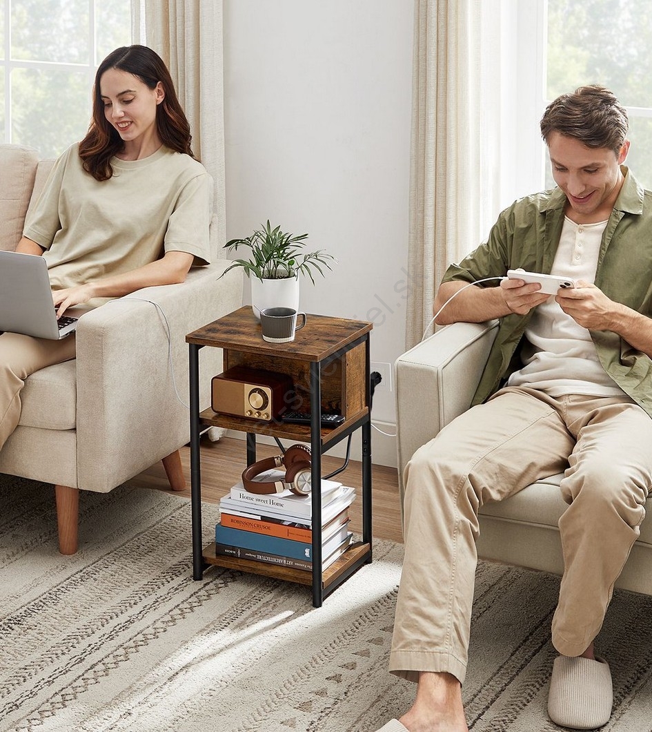 Odkladací stolík s vstavanými zásuvkami a USB portami ROD hnedá/čierna