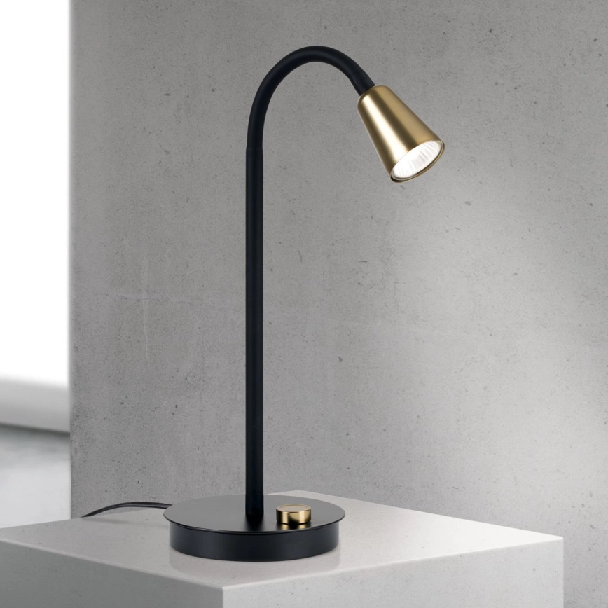 • Stmievateľná flexibilná stolná lampa DOTTY 1xGU10/10W/230V čierna/mosadz