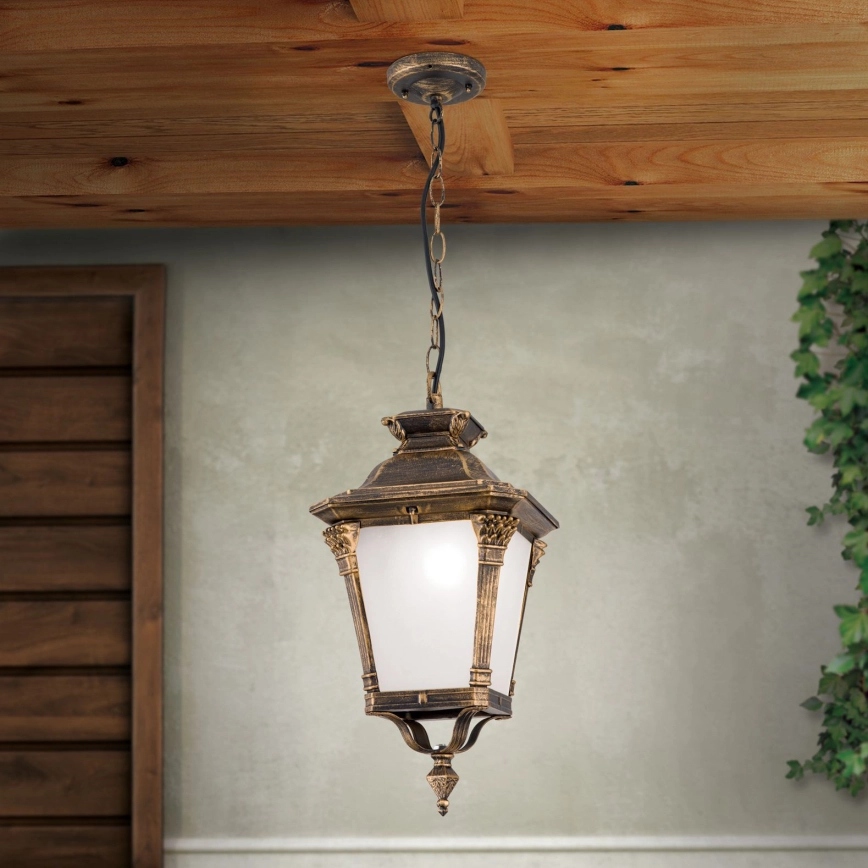 Vonkajšie závesné svietidlo AIKO 1xE27/60W/230V IP23 bronz/patina charakterizuje pekný dizajn a funkčné prevedenie.  Do svietidla je určená žiarovka s päticou E27. Tu si môžete kúpiť ďalšie žiarovky za výhodnú cenu. Získate tak zaujímavý doplnok do svojho domova.