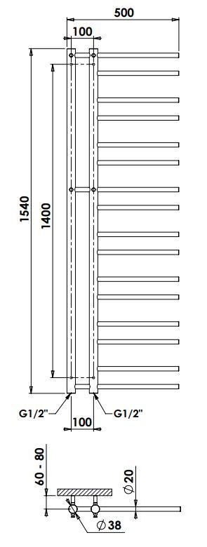 P.M.H. T2W-L - Kúpeľňový rebríkový radiátor THEIA 352W 154 cm ľavý/biely