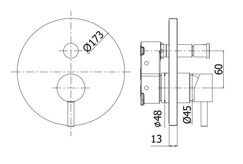 • Podomietková sprchová batéria s prepínačom pre prepnutie výstupu.