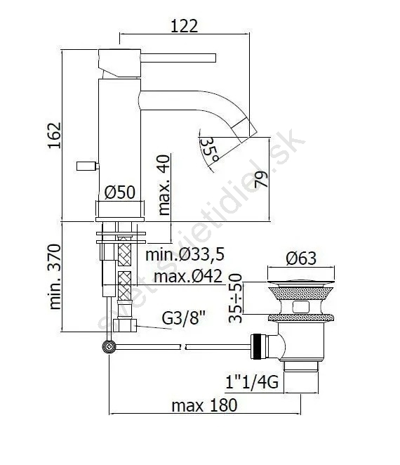 • Stojanková páková umývadlová batéria s výpustom.