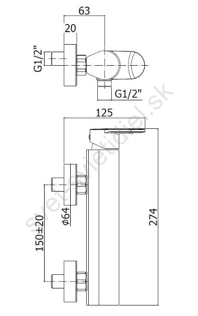 • Rozteč pre montáž na stenu: 150 mm.