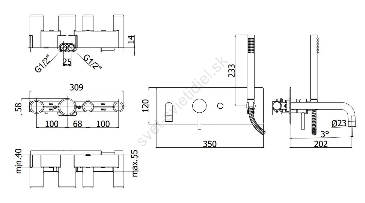 • Pákové ovládanie pre pohodlné riadenie teploty a prietoku.