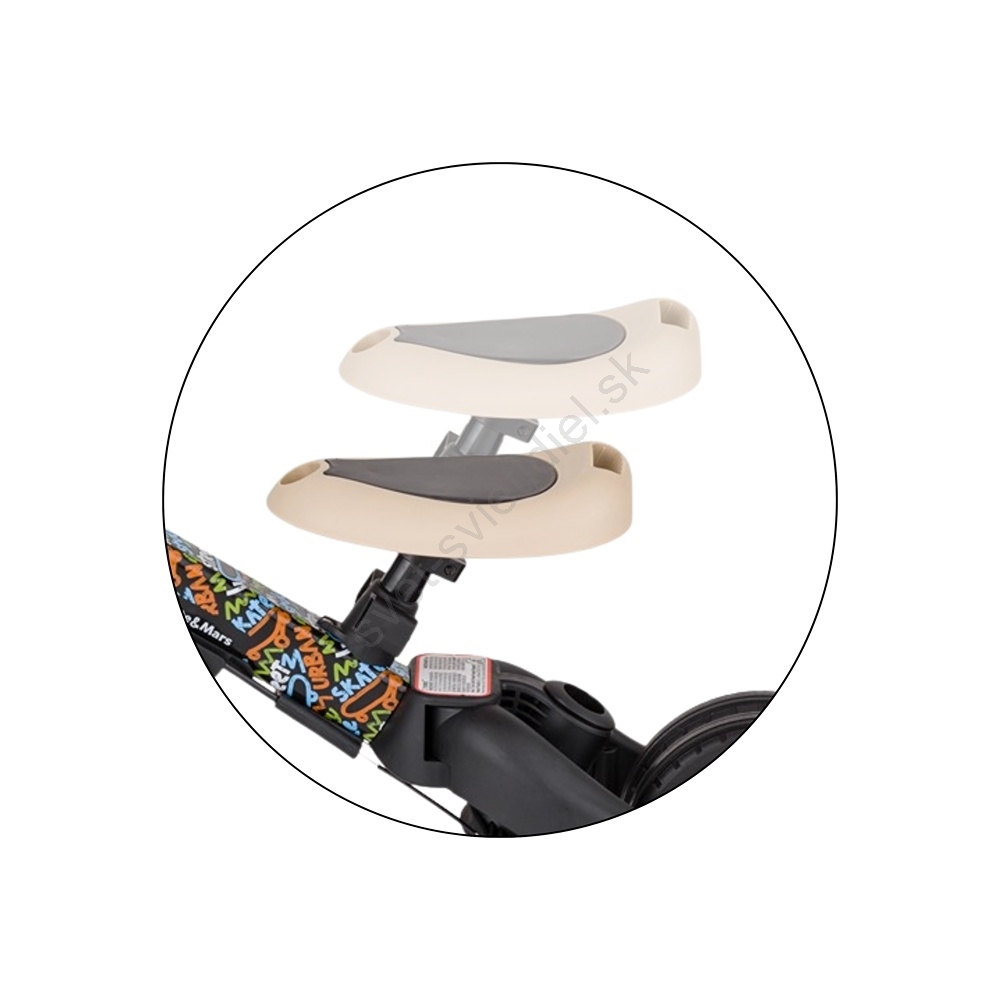 • Rozmery v trojkolkovej verzii: dĺžka: 67 cm, šírka: 46 cm, výška (sedadla): 31-37 cm.
