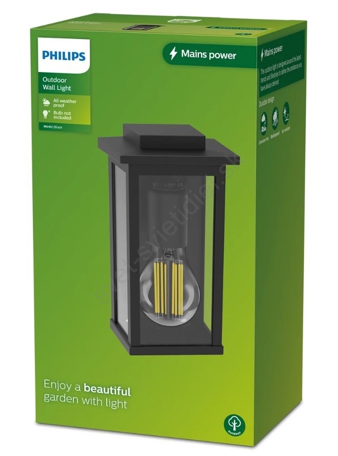 Philips - Vonkajšie nástenné svietidlo MIRTH 1xE27/25W/230V IP44 charakterizuje pekný dizajn a funkčné prevedenie.  Do svietidla je určená žiarovka s päticou E27. Tu si môžete kúpiť ďalšie žiarovky za výhodnú cenu. Získate tak zaujímavý doplnok do svojho domova.