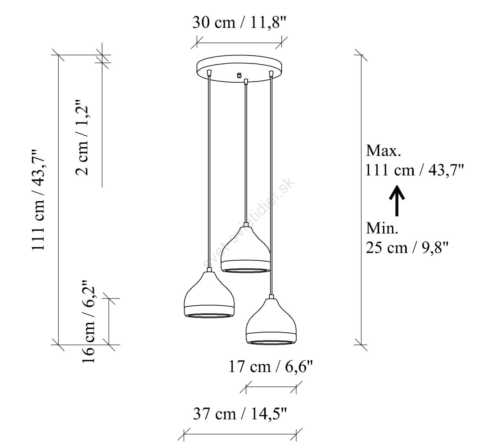 • Luster na lanku YILDO 3xE27/40W/230V