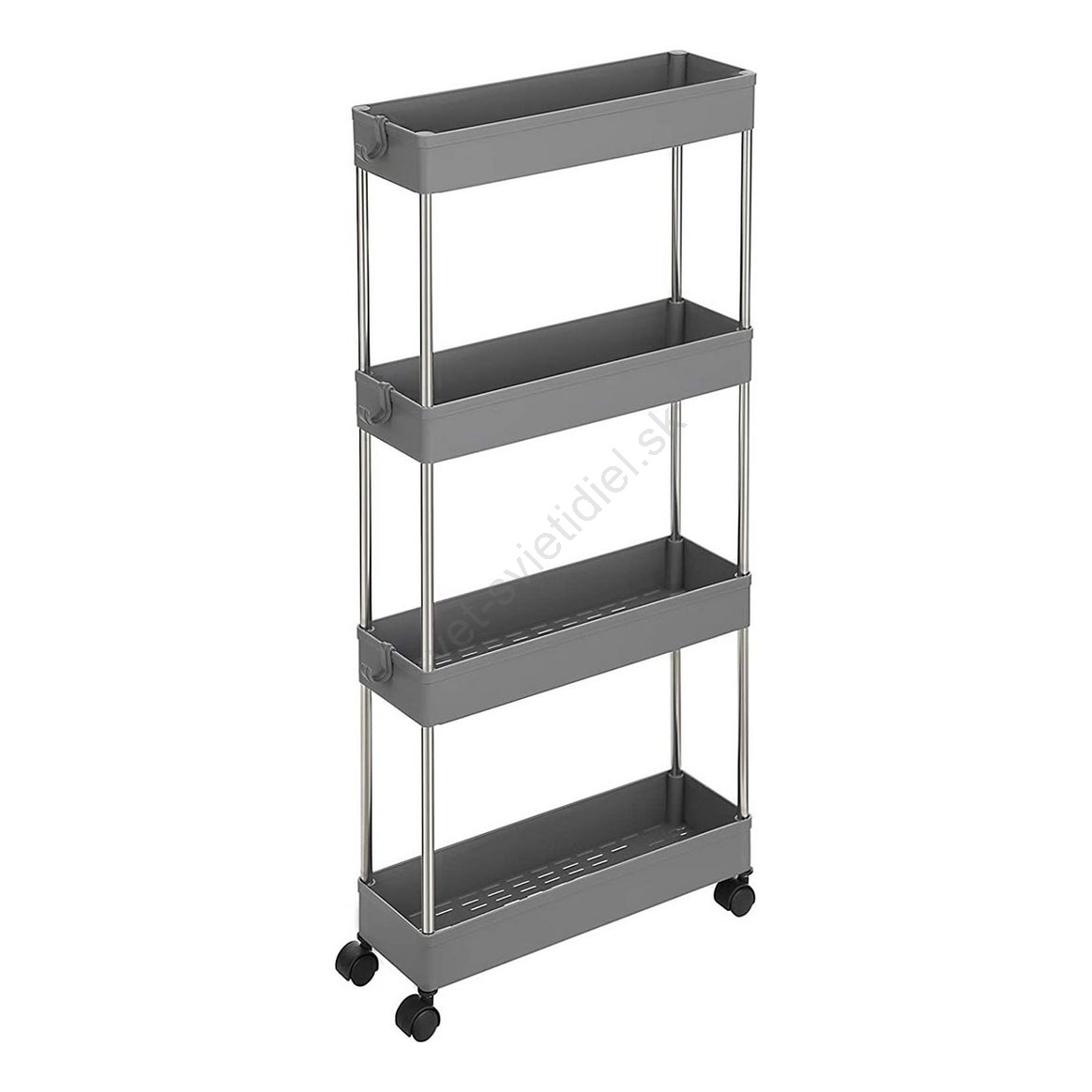 • Vozík so štyrmi policami sa dá rozdeliť na dve dvojposchodové police alebo na podnos a trojposchodový vozík, takže si môžete vybrať, či ho použijete pri dreze na kúpeľňové potreby alebo na kuchynskej linke na fľaše, hrnce a panvice.