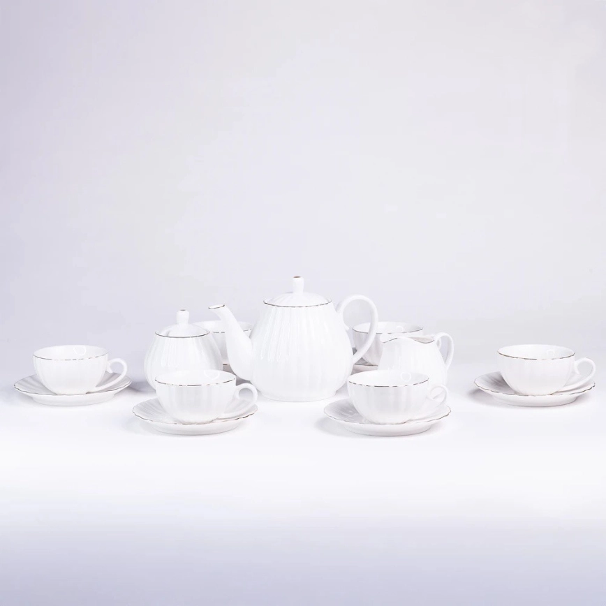 • Nadčasová sada porcelánového riadu v bielej farbe.