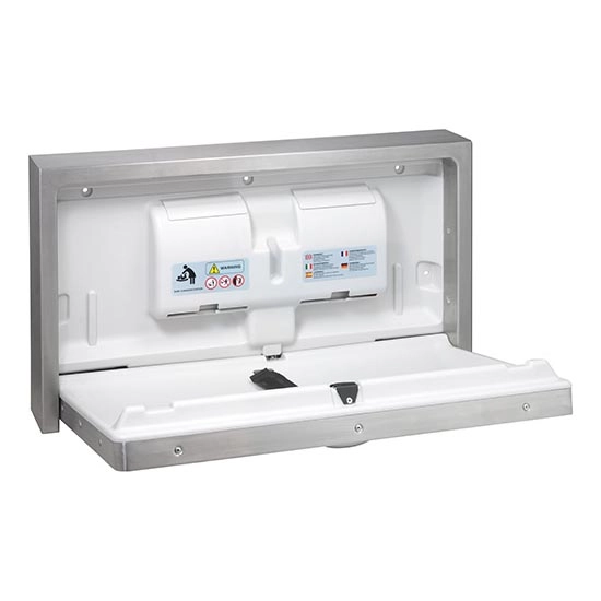 • Nástenný prebaľovací pult s rozmermi 90 x 52 cm, ideálny pre verejné priestory.