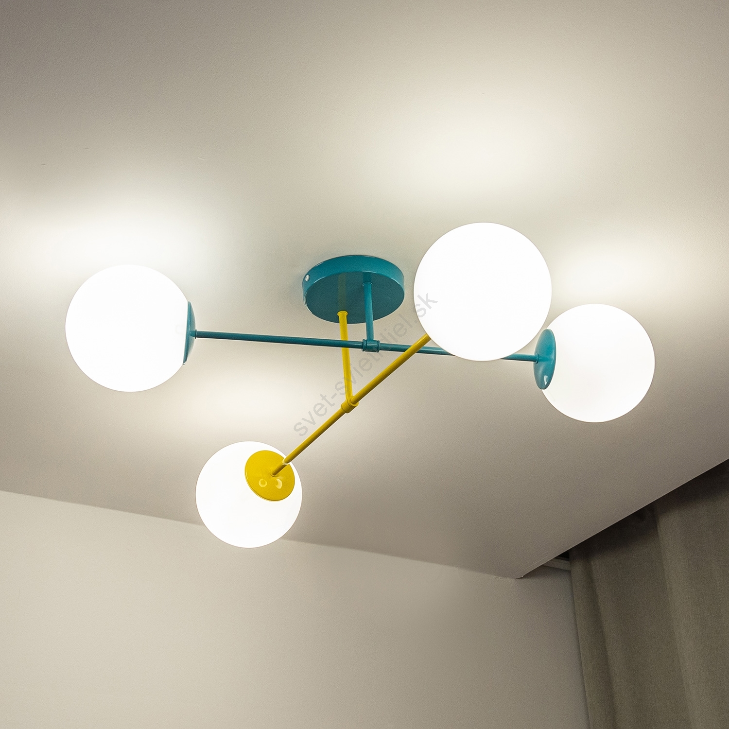 Prisadený luster MOON 4xE27/15W/230V tyrkysový/žltý charakterizuje pekný dizajn a funkčné prevedenie.  Do svietidla je určená žiarovka s päticou E27. Tu si môžete kúpiť ďalšie žiarovky za výhodnú cenu. Získate tak zaujímavý doplnok do svojho domova.