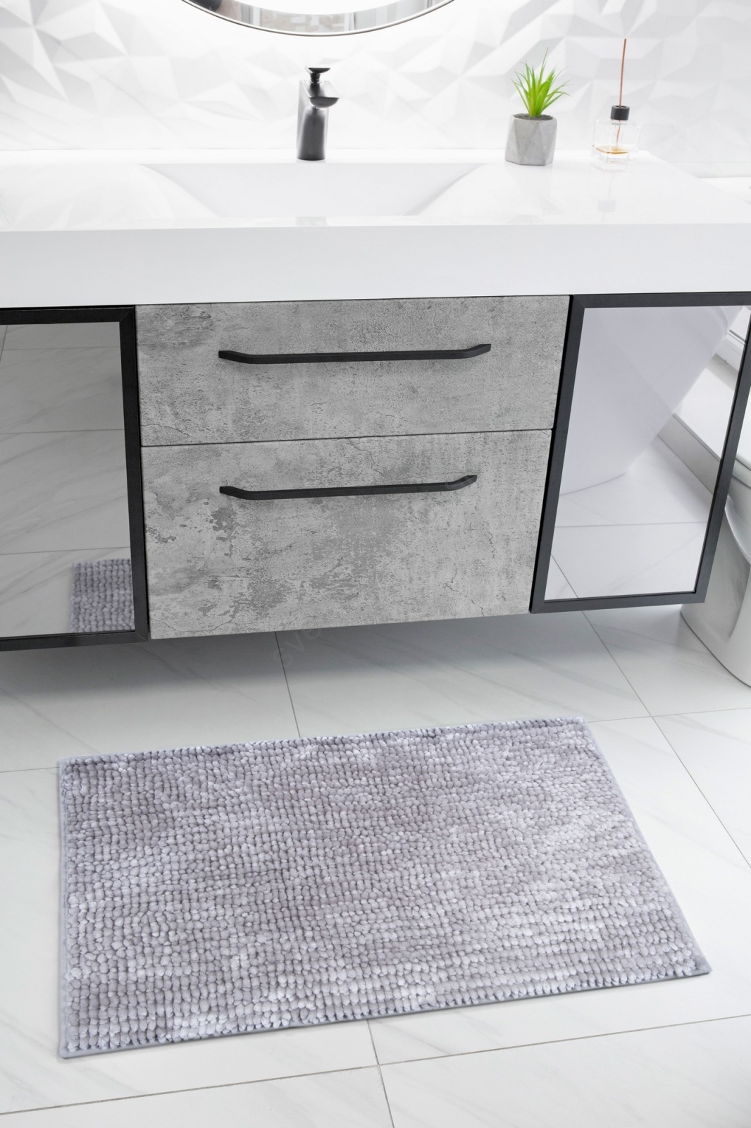 Protišmyková kúpeľňová predložka CHENILLE 50x80 cm sivá