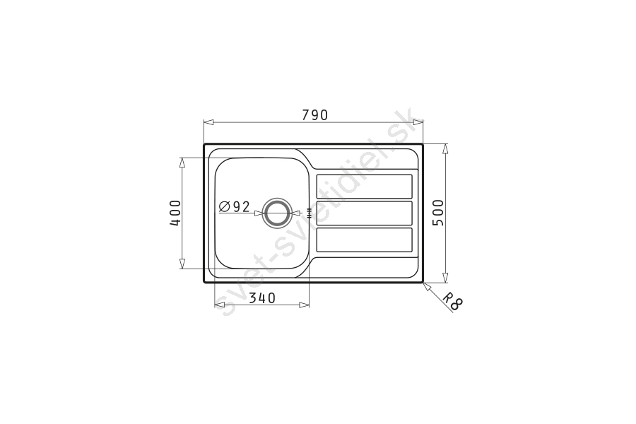 • Vyrobený z vysoko kvalitnej nehrdzavejúcej ocele s hlbokou vaničkou.