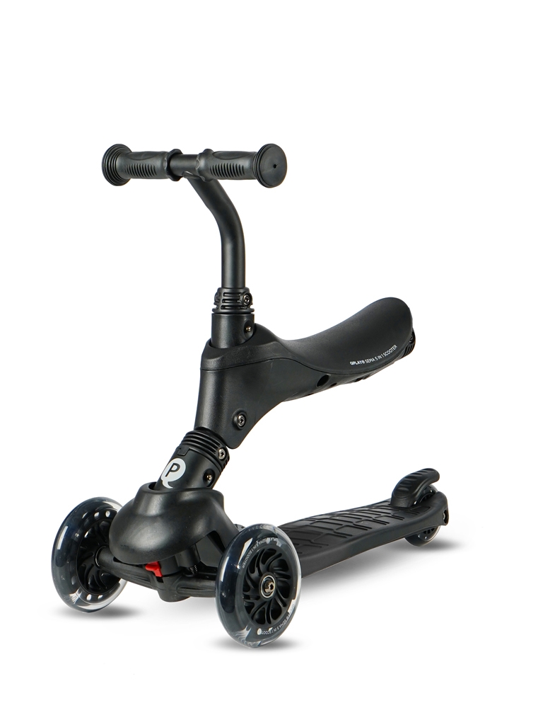 QPlay - Detská kolobežka SEMA PRO 5v1 s LED kolieskami, čierna