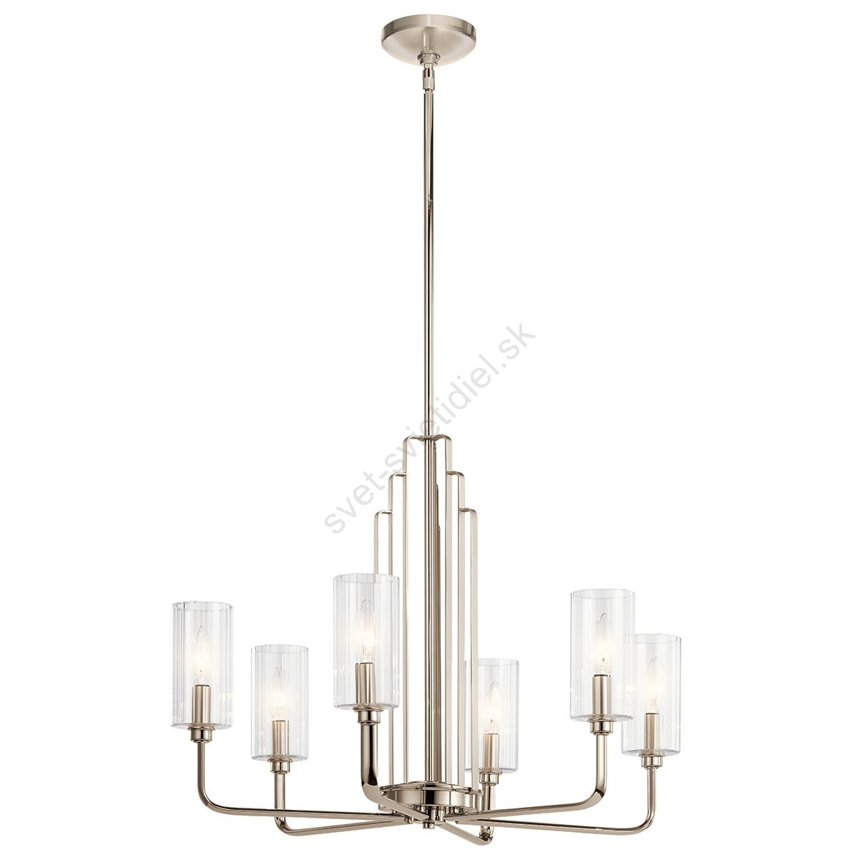 Quintiesse - Luster na tyči KIMROSE 6xE14/40W/230V pr. 68,6 cm, lesklý chróm charakterizuje pekný dizajn a funkčné prevedenie.  Do svietidla je určená žiarovka s päticou E14. Tu si môžete kúpiť ďalšie žiarovky za výhodnú cenu. Získate tak zaujímavý doplnok do svojho domova.