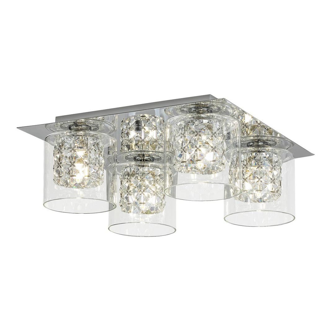 Moderné a elegantné stropné svietidlo Duchess so 4 žiarovkami bude impozantným doplnkom zariadenia vášho obývacieho priestoru, jedálne alebo spálne. Kovové svietidlo v chrómovej farbe je doplnené priehľadnými valcovými sklenenými tienidlami, ktoré umožňujú vidieť krásnu krištáľovú výzdobu vo vnútri hláv svietidla. Tento model je možné upevniť na strop pomocou veľkej štvorcovej dekoratívnej základne. Svietidlo Duchess je určené pre štyri žiarovky, každá s výkonom do 40W. Typ pätice je G9. Podľa vašich preferencií si môžete zvoliť teplý alebo prirodzený biely zdroj svetla. Ak svietidlo umiestnite do spálne, odporúčame použiť žiarovky vyžarujúce teplé biele svetlo, ktoré vám pomôžu vytvoriť útulnú, intímnu atmosféru. Rozmery stropného svietidla Duchess sú 370x370 mm, vzdialenosť od stropu je 145 mm. Tento model je dodávaný bez svetelných zdrojov.
